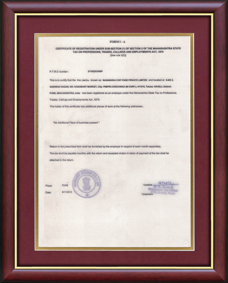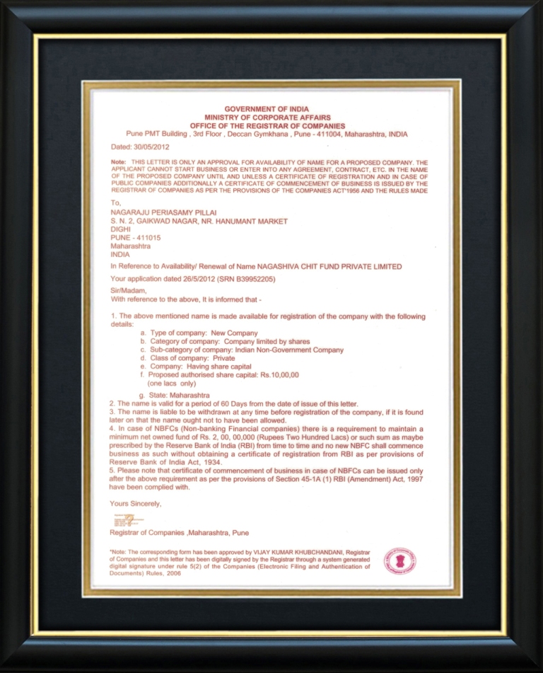 From - I A (ACT - 1975) Nagashiva Chit Fund Pvt Ltd