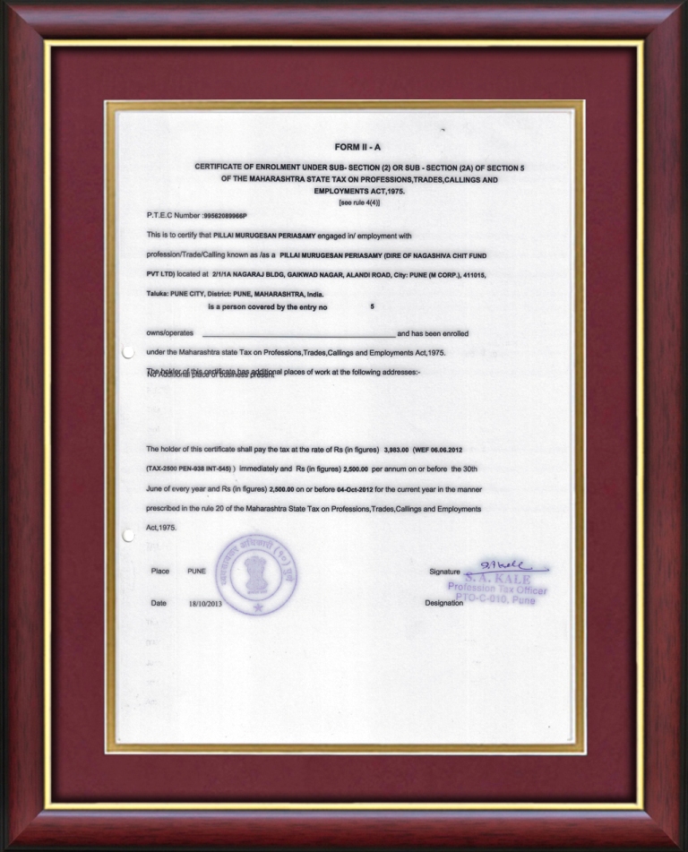From - II A (ACT - 1975) Nagashiva Chit Fund Pvt Ltd